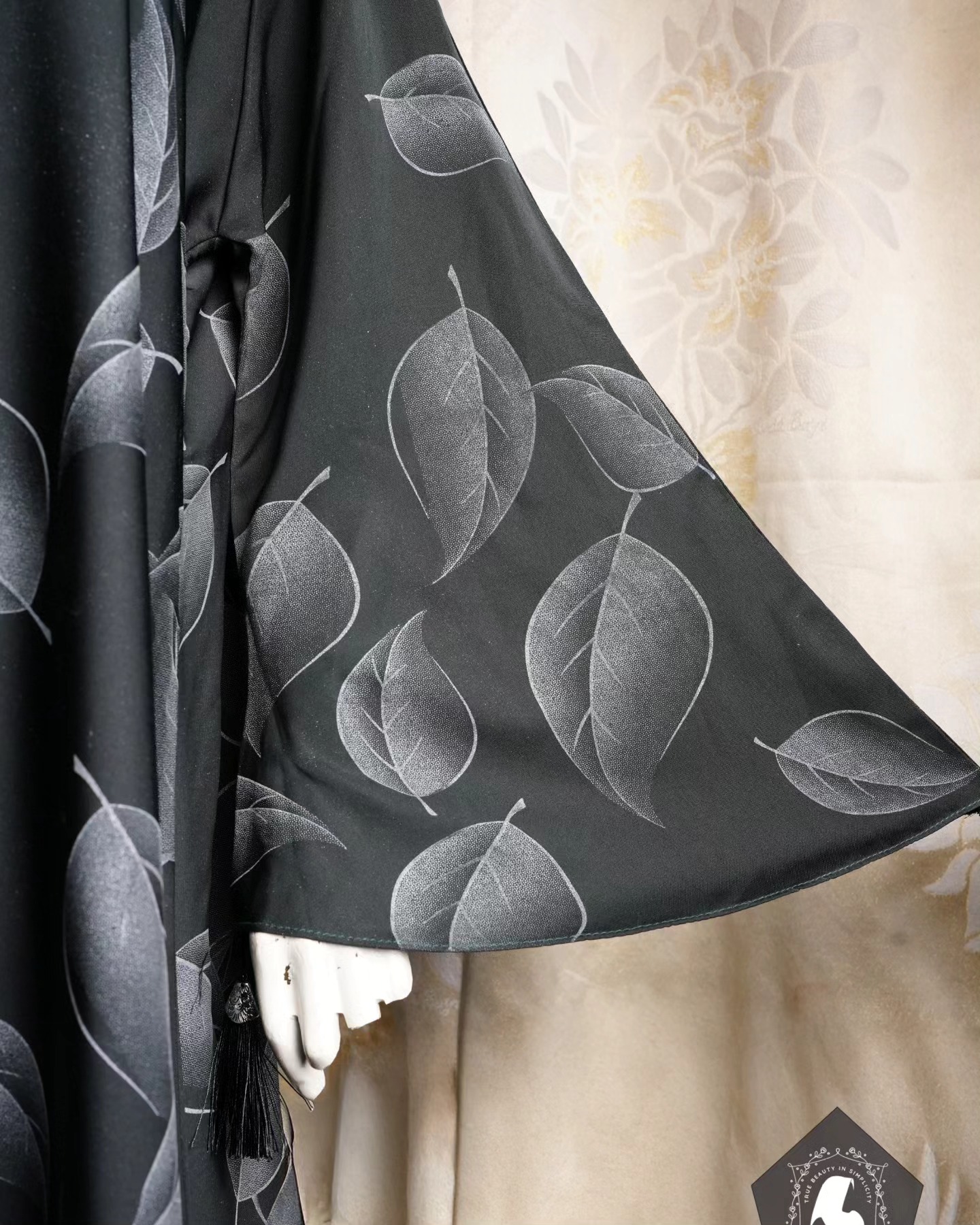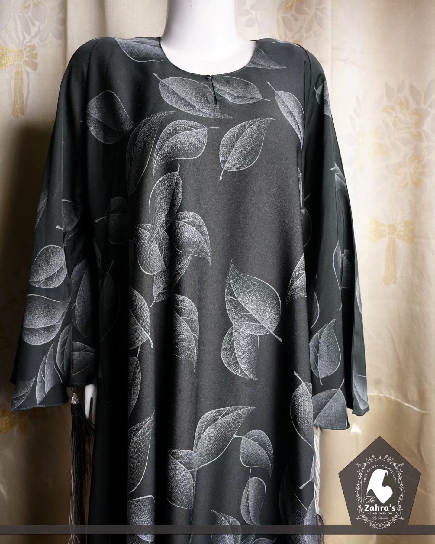 Whispers of Nature: The intricate leaf design evokes a sense of natural beauty, adding a subtle yet captivating detail to the abaya.